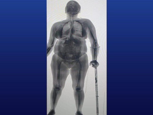 Uma idosa foi flagrada, na tarde desta quarta-feira (7), tentando adentrar na Cadeia Pública de Salvador com drogas e equipamentos eletrônicos de comunicação. No entanto, a tentativa da mulher, que é mãe de um interno, foi frustrada por uma ação da Secretaria de Administração Penitenciária e Ressocialização (Seap), por meio da Polícia Penal da Bahia, e ao uso da tecnologia do BodyScan. No intuito de burlar a fiscalização, a visitante escondeu o material ilícito dentro de uma muleta e no par de sandálias. A farsa foi descoberta assim que a mulher entrou no equipamento. De imediato, as imagens acusaram os ilícitos.