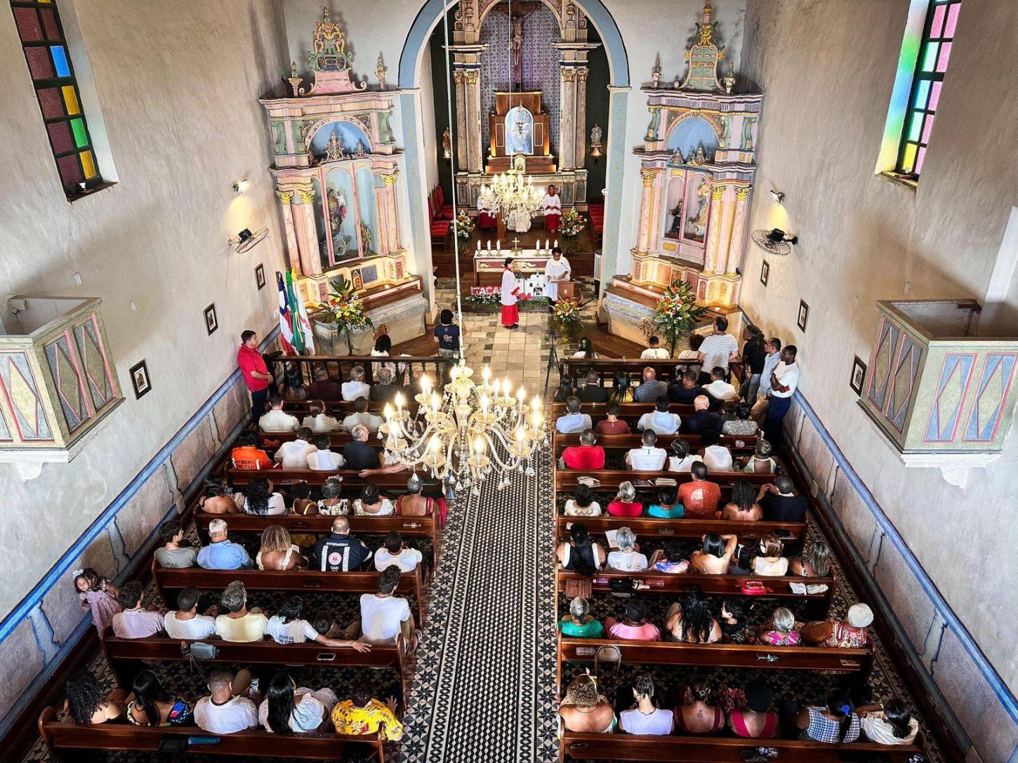 A missa solene reuniu autoridades políticas, lideranças comunitárias e moradores da sede, de Taboquinhas e da zona rural. Estiveram presentes o prefeito Nego de Saronga, o vice-prefeito Zé, vereadores, além do deputado estadual Rosemberg Pinto e do deputado federal Paulo Magalhães, que reforçaram, durante a celebração, o compromisso com o desenvolvimento de Itacaré.