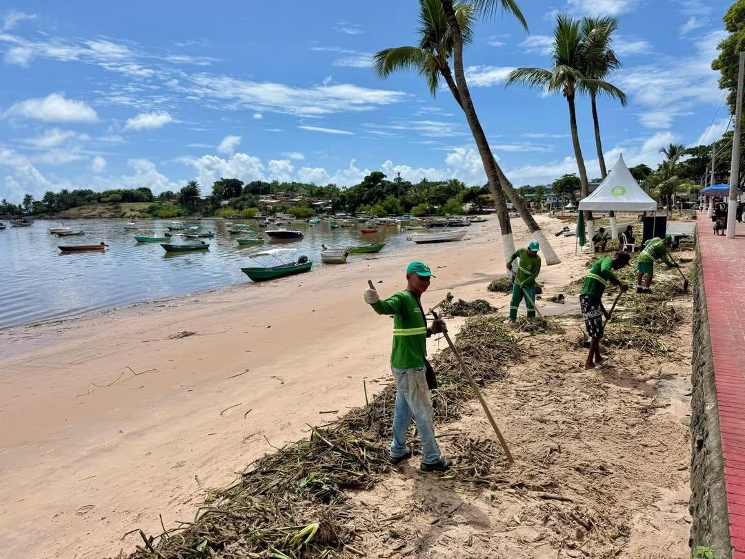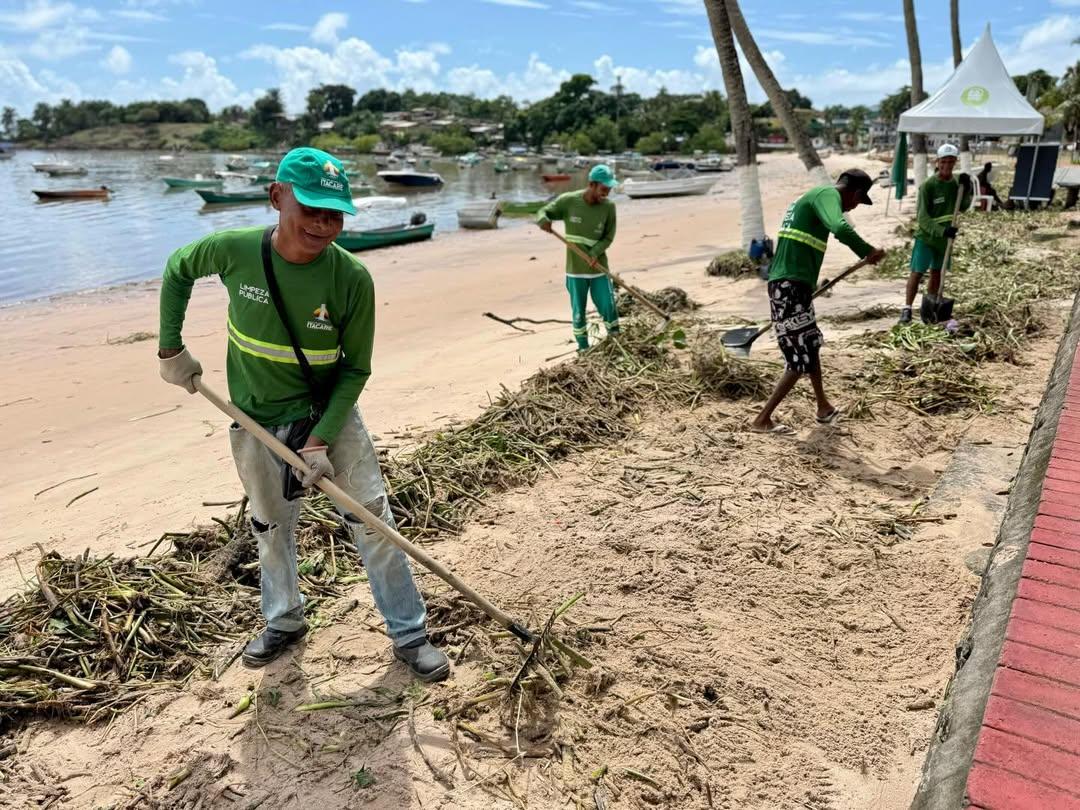 O trabalho contempla tanto a orla da cidade quanto as praias, mantendo esses espaços limpos e adequados para moradores, pescadores e visitantes que utilizam essas áreas para lazer e atividades do dia a dia.